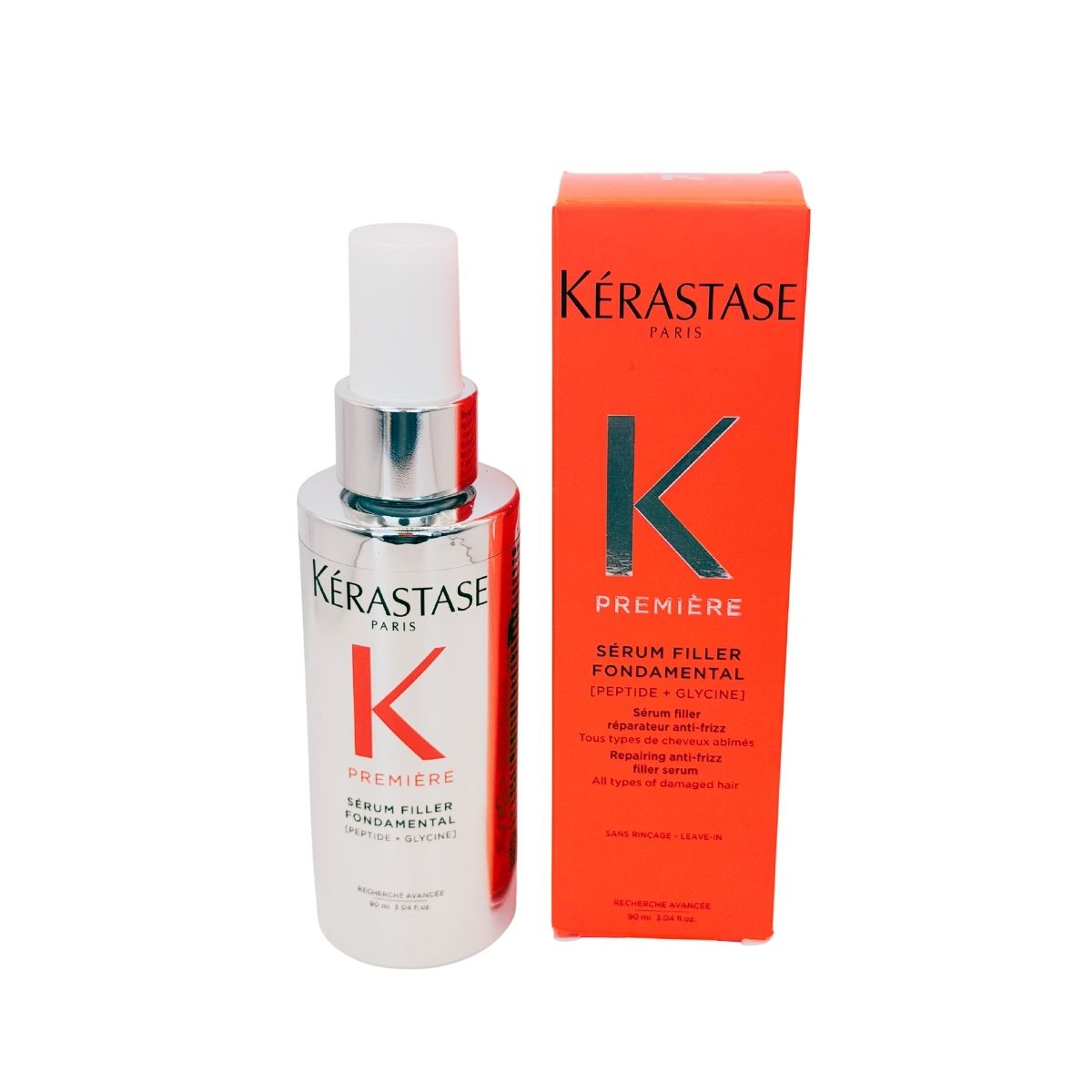 Kerastase Première Sérum Filler Fondamental 90 ml es un serum sin enjuague que ayuda a controlar el frizz y protege del calor, ideal para cabello dañado que busca disciplina y mejor acabado en el peinado.
